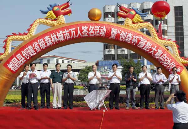 九江摄影网讯(木力)5月22日上午,由都昌县创建省级森林城市办公室和县林业局、县摄影协会联合举办的“都昌县创建省级森林城市”万人签名活动暨“创森杯”摄影大赛启动仪式在县新世纪广场隆重举行。县委书记周毛春,县长陈云滚,县委常委、统战部长李建华,县人大常委会副主任江新福,县政府副县长谭四明,九江日报社副总编、九江市摄影家协会主席宋小勇,副主席杨青、罗匡龙以及九江市及部分县的摄影爱好者参加了启动仪式,并进行了实地创作活动。 此次“创森杯”摄影大赛,面向社会征集作品。作品主要是能展示都昌县城乡绿化、反映“三绿”建设方面成就、反映生态建设方面成就等必须是在都昌县域范围内拍摄的作品。参赛作品风格与体裁不限,彩色、黑白均可,组照不超过6幅小图,以单幅计算,jpeg格式3MB以上,每幅作品均需标明标题、作者姓名、联系电话、拍摄地点等信息。比赛设有一等奖、二等奖、三等奖、优秀奖、入选奖,共56名。投稿自2015年6月1日开始至2015年7月31日止,投稿邮箱为县摄协:420368603@qq.com、县林业局:349981926@qq.com。