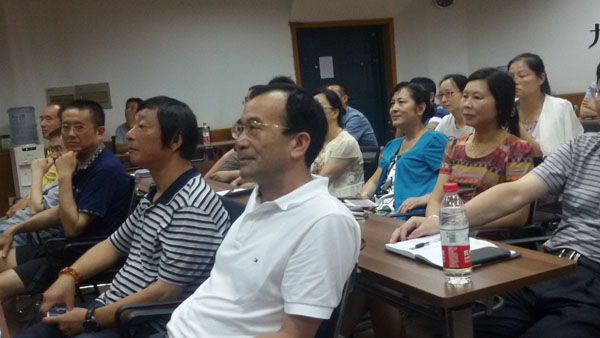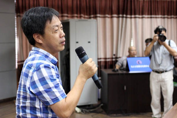 九江石化总厂党委副书记、工会主席、纪委书记赖万寿和影友在听讲座
