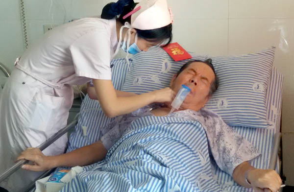 徐海林在医院接受治疗情景。