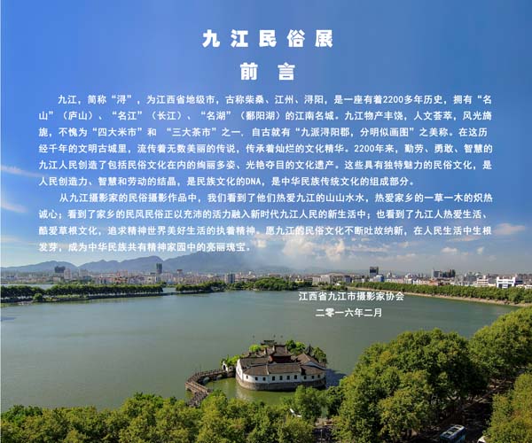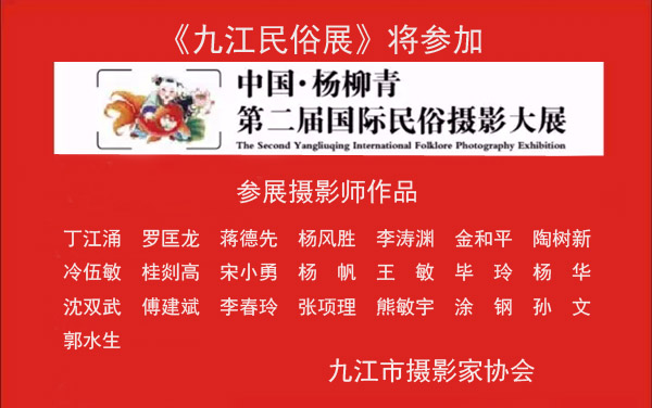 九江摄影网讯(宋小勇)由中国摄影家协会、政协天津西青区委员会主办,中国摄影出版社承办的“中国·杨柳青第二届国际民俗摄影大展”将于2月21日至23日(元宵节期间)在天津杨柳青镇举行。活动大展组委会将组织30场民俗题材内容的展览,《九江民俗展》《赣南客家民俗》就是属于30场民俗题材内容的展览。在此之前,组委会搞了”第二届国际民俗摄影大展征稿启事“,征集了纪录、艺术两大类作品120幅。并且评出了金质、银质 、铜质收藏作品和优秀作品。 杨柳青是天津千年古镇,京杭大运河在此设码头,杨柳青年画享誉海内外,杨柳青元宵节灯会吸引30万人参加。也欢迎九江摄影、民俗爱好者参加。