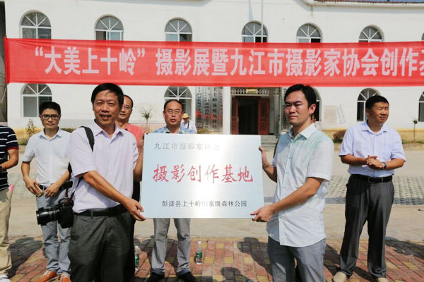 九江摄影网讯(彭泽摄协)9月27日上午,九江市摄影家协会创作基地授牌仪式暨彭泽县上十岭垦殖场和彭泽县摄影协会联合举办的《大美上十岭》摄影展在上十岭垦殖场游客中心广场举行。九江市文联副主席、《九江日报》副总编、九江市摄影家协会主席宋小勇,彭泽县人民政府副县长帅中华,九江市摄影家协会副主席杨青、副秘书长李涛渊等领导以及该县县委宣传部、县旅发委、文广新局、文联、彭泽县摄影协会等相关部门单位负责人和上十岭垦殖场干部职工出席了仪式。宋小勇向该场党委书记韩忠结授予了九江市摄影家协会创作基地的牌匾,帅中华致欢迎词。