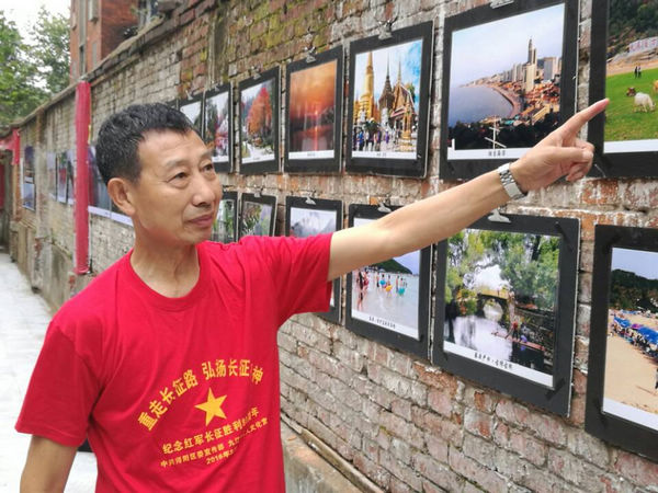 九江摄影网讯(木力)为庆祝新中国成立67周年、纪念红军长征胜利80周年,10月2日至3曰,九江老年大学摄影协会会员张义发自费举办的个人摄影展在九江解放军第171医院南门生活区围墙上举行。共展出他最近参加重走长征路摄影采风和近几年拍摄的风光、人文摄影作品37幅。