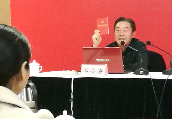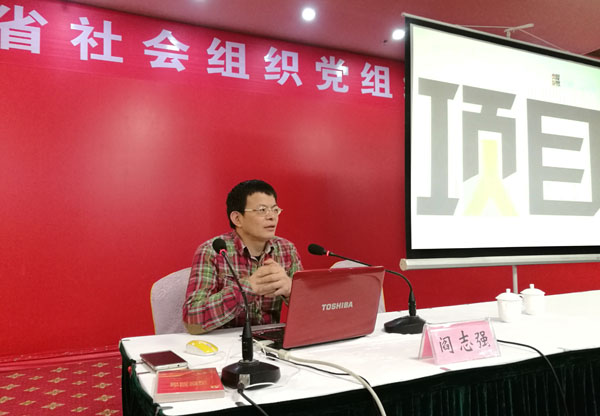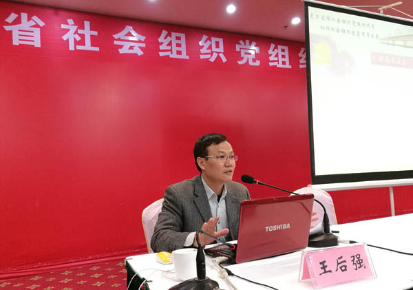 省民政厅党组副书记、省民政厅民间组织管理局局长刘石呈讲课