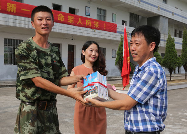 向解放军第一集团军某部永修县九合乡抗洪驻扎点赠书。