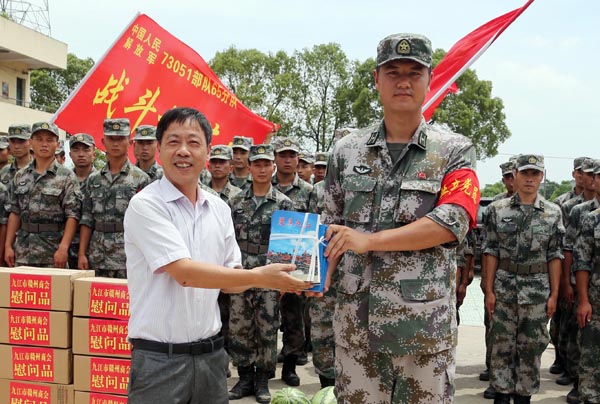 向武警九江市支队九江县江洲抗洪驻扎点赠书。