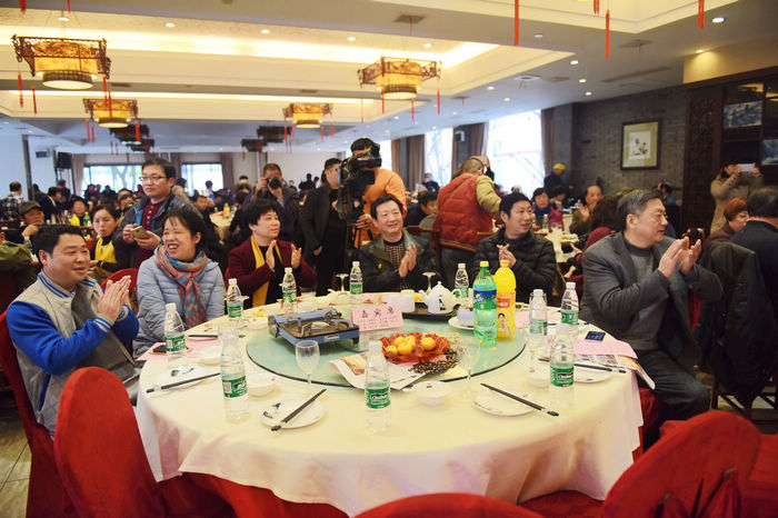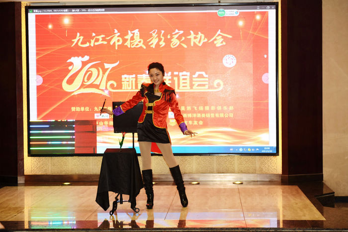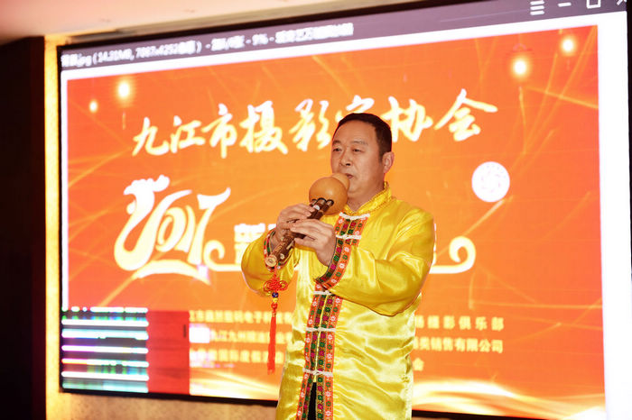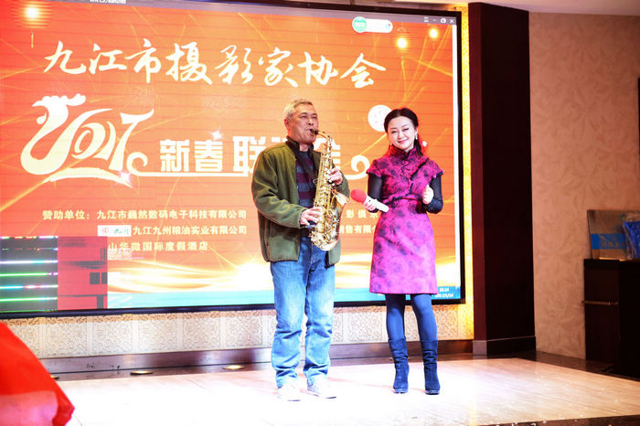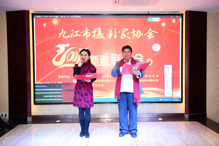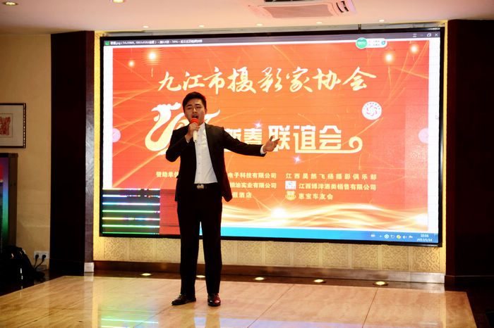 联谊会现场 九江摄影网讯(沈双武)1月14日下午,九江市摄影家协会2017年迎新春联谊会在盛世麒麟大酒店隆 重举行。市政协原巡视员、市摄协顾问张华东,九江市摄协特邀理事、江西省国税局副巡视员夏文川,市文联调研员陆建珠,市文联副主席段虹,九江市摄协特邀理事、九江广播电视台总编周云飞,中国邮政储蓄银行九江分行行长湛先卿,九江市纪委驻市财政局纪检组组长钟群久,九江市摄协常务理事、九江太保财险公司原总经理肖明,九江市民政局副局长陆发,九江市摄协顾问、九江市职工摄协主席田小元及九江巍然数码科技有限公司董事长余杨保、江西昊然飞扬摄影俱乐部总经理迟荣国、九江惠宝文化传播有限公司董事长吴峻、江西博洋酒类销售有限公司城市经理陈远、九江九州粮油实业有限公司副总经理史雪凤、庐山华微国际度假酒店副总经理程昱等赞 助单位负责人应邀出席。在九江的市摄协班子成员、主席宋小勇,副主席蔡杰、杨青、陈杰、罗匡龙,副秘书长沈双武、蔡少敏、李涛渊、张项理和来自全市各基层摄协的300余名摄影家、摄影爱好者会聚一堂,大家一起分享摄影给他们带来的快乐。 联谊会上,九江市文联副主席、九江市摄协主席宋小勇致新年贺词,副主席兼秘书长陈杰宣读了九江市摄影家协会《关于表彰2016年度先进集体、优秀会员的决定》,嘉宾和摄协领导为先进集体、优秀会员颁奖。市摄协副主席蔡杰为新会员代表颁发会员证书,市摄协副主席杨青宣读了“九江市第二届野生鸟类摄影比赛”获奖作者名单,并和嘉宾为获得金、银、铜奖的作者颁奖。特邀嘉宾、著名摄影家杨继红应邀为摄友作了《新闻纪实摄影与海昏侯挖掘的拍摄》专题讲座,我市著名摄影家张项理、詹毅、罗建鸿畅谈了优秀摄影作品创作体会。还播放了九江市摄协2017年贺岁专题片和由中央电视台“老故事”“故乡”栏目2016年12月31日播出的介绍九江摄影人李均忠老师的专题片《云居情怀》。 期间,赞助单位九江巍然数码科技有限公司、江西昊然飞扬摄影俱乐部、九江惠宝文化传播有限公司、九江九州粮油实业有限公司、庐山华微国际度假酒店负责人分别作了企业宣传介绍,穿插进行了抽 奖活动,表演了基层团体会员单位选送的太极、器乐独奏、魔术、男声独唱、京剧、萨克斯独奏等文艺节目。