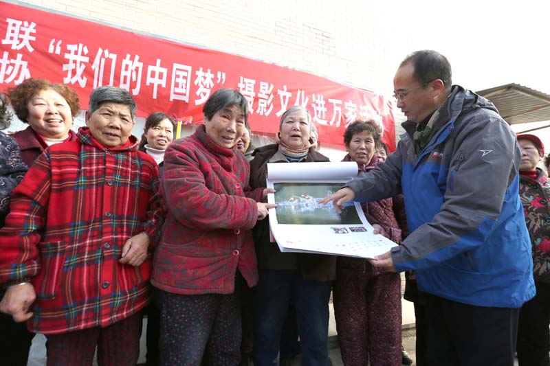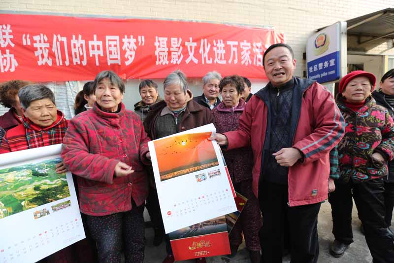 九江摄影网讯(李涛渊)1月20日,九江市文联、九江市摄影家协会联合组织我市部分摄影家,来到浔阳区甘棠街道新公园社区,开展“我们的中国梦”摄影文化进万家活动,为社区居民赠送“金鸡贺春”摄影文化挂历。九江市文联副主席、九江市摄影家协会主席宋小勇,九江市摄影家协会副主席蔡杰、杨青,副秘书长李涛渊参加了活动。