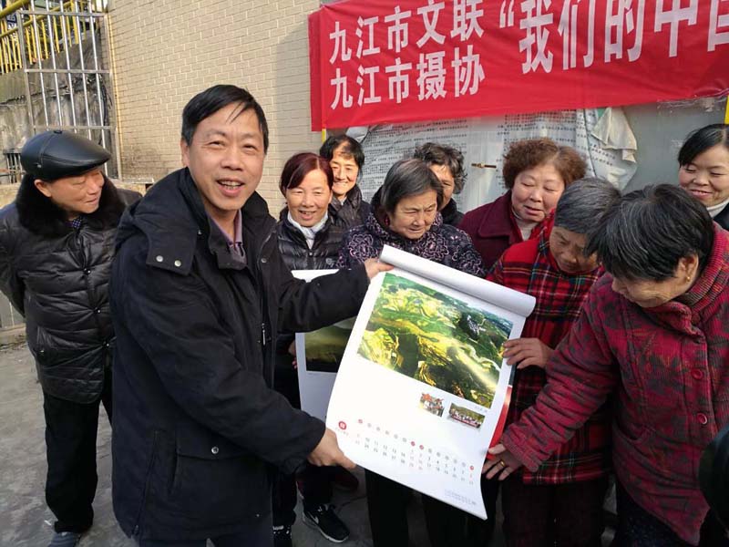 在新春佳节到来之际,九江市摄影家协会将组织摄影家、摄影爱好者,陆续开展摄影文化走基层活动,聚焦社会发展、群众生活等,为节日文化增添喜庆气氛。这次向社区居民赠送的挂历,大多都是参加活动的摄影家们自己拍摄的作品。