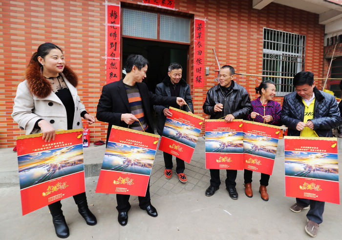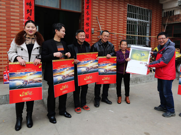 ) 1月29日,农历新年正月初二,九江市摄影家协会“我们的中国梦一一新春摄影文化进基层活动”小分队来到庐山市华林镇桃林村,向当地百姓送祝福,给他们带来了新年挂历,增添了节日的喜庆气氛。