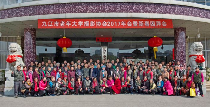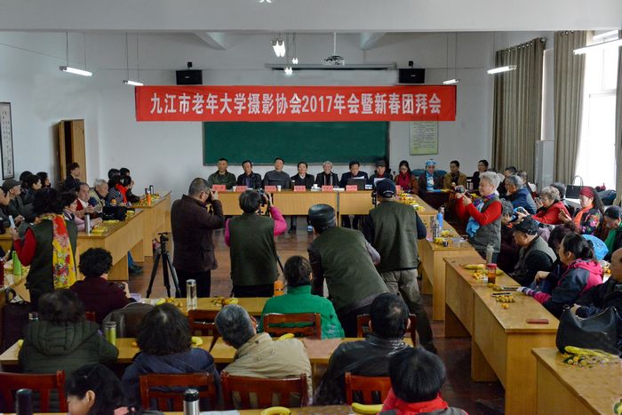 九江摄影网讯(余传忠)金鸡报春,红梅迎瑞。在春回大地、万象更新的时节,九江市老年大学摄影协会2017年会暨新春团拜会近日隆重举行。会场内欢声笑语,热闹非凡。与会者都穿上崭新的摄影马甲,个个容光焕发。市摄协副主席罗匡龙、市职协主席田小元及秘书长张晓明、濂溪区摄协主席桂剡高、浔阳区摄协名誉主席杨军应邀出席。