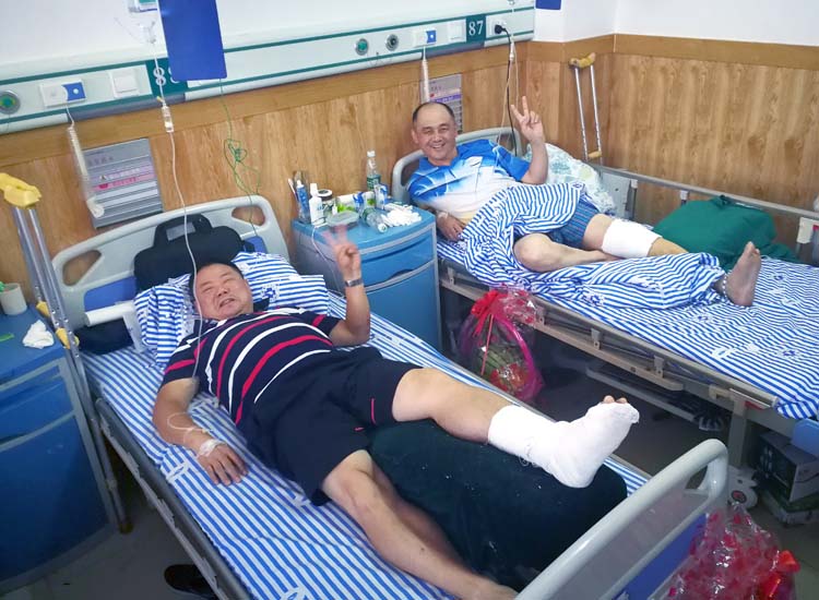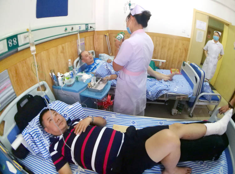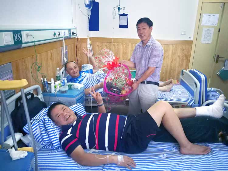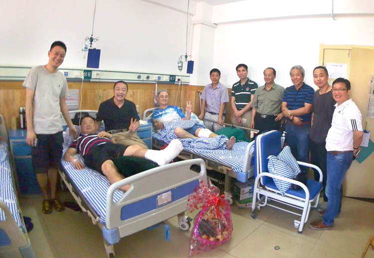 沈双武近日在新疆采风期间意外摔伤,并造成膑骨骨折,回到九江继续住院治疗;李涛渊是在7月18日骑摩托车采风途中被转向车挂倒并造成跖骨骨折而入院治疗。