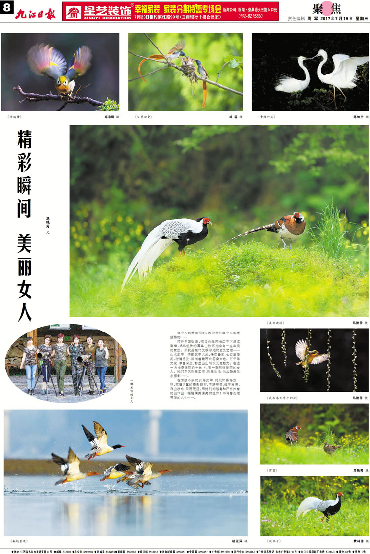 在为数不多的女鸟友中,她们和男鸟友一样,扛着沉重的摄影器材,不辞辛苦、起早贪黑、爬山涉水、风雨无阻,用她们的智慧和汗水执着的创作出一幅幅精美漂亮的佳作!书写着灿烂芳华的人生……