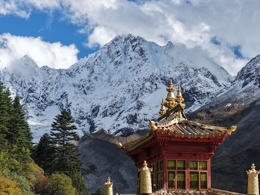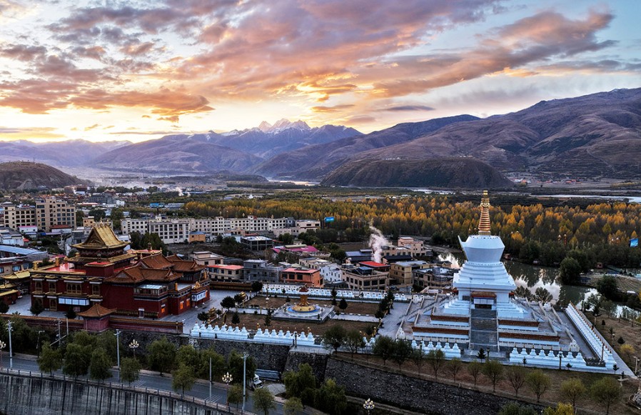 《晓色染甘孜 白塔沐朝晖》 宋小勇 摄