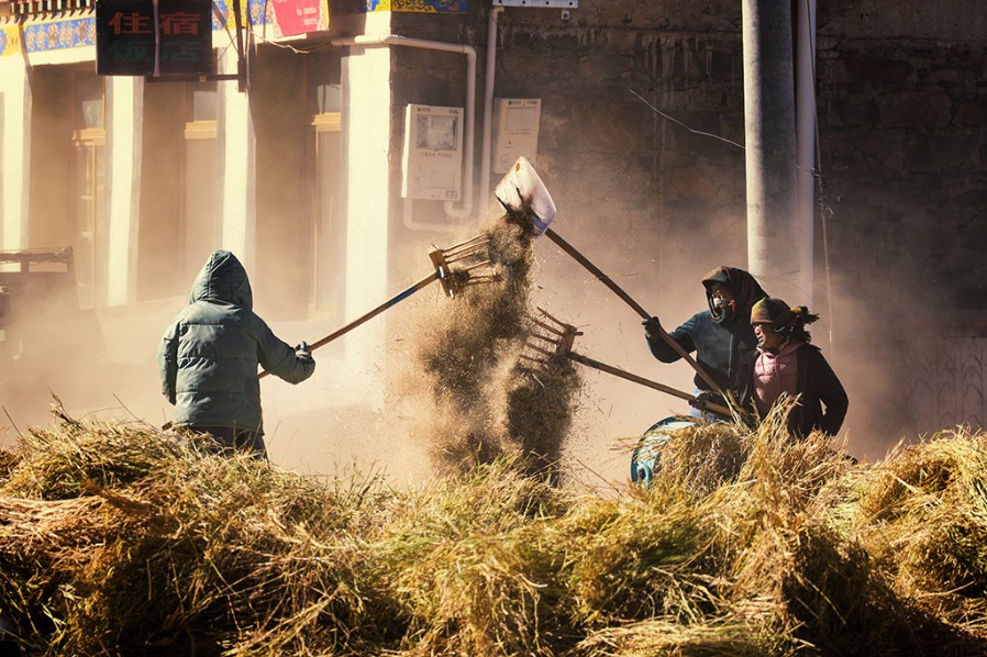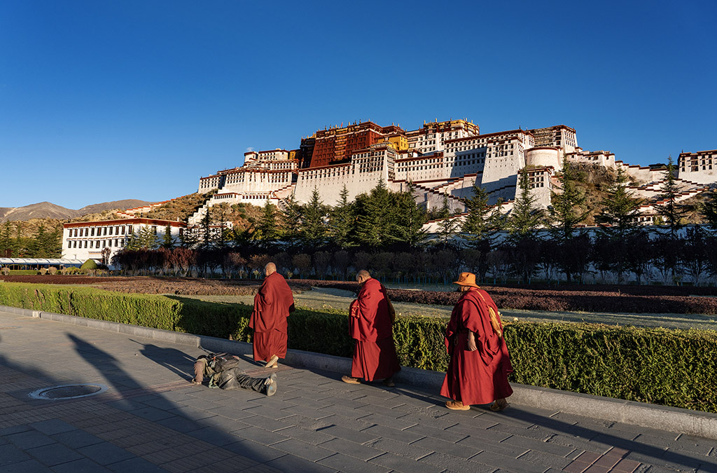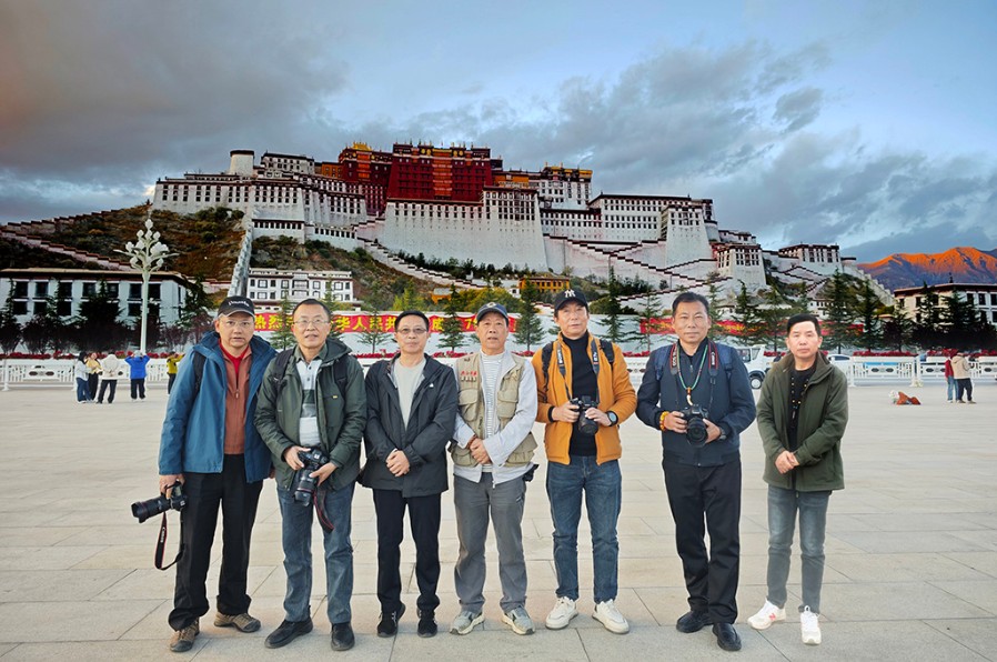 《云栖布宫》 殷锡翔 摄 车轮碾过秋光里的经纬,镜头框住天地间的壮阔。我们一行八位摄影人,怀揣对雪域高原的向往,从10月7日开始,从九江启程,沿318川藏线向西而行,再循317川藏北线踏歌归来,21天的旅程里,风霜雨雪皆成景,人文自然尽入镜。 10月的风裹挟着秋意,从利川的山林吹到成都的街巷,再到雅安318博物馆里陈列的岁月痕迹,每一步都踏在“中国人的景观大道”的序章上。泸定桥的铁索映着晨光,康定的情歌随秋风漫过山川,天路十八弯如银带缠绕山间,卡子拉山口的经幡在海拔四千多米的高空猎猎作响。理塘的草原还留着夏末的余温,姊妹湖藏在雪山脚下,碧水如镜倒映着蓝天白云,随手一拍便是不加修饰的画卷。东达山垭口的积雪初现,怒江72拐的弯道惊险刺激,然乌湖的晨雾似轻纱笼罩湖面,墨脱的海市蜃楼如梦似幻,波密嘎瓦隆的林海层林尽染,鲁朗小镇的石锅香混着松涛声漫溢山间。林芝的秋意最浓,卡定沟的瀑布飞流直下,直至拉萨城的轮廓撞入眼帘——布达拉宫金顶在阳光下熠熠生辉,大昭寺前的信徒虔诚叩拜,羊湖的蓝如宝石镶嵌在群山之间,加诺拉山口的风捎来高原的问候,每一处风景都让快门声此起彼伏。