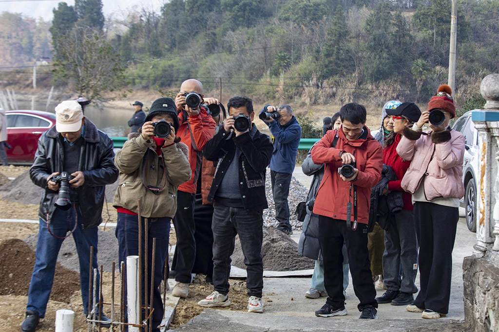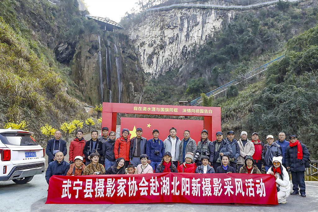 2025年12月26日至28日,武宁县摄影家协会组织会员赴湖北省黄石市阳新县,开展为期三天的沉浸式摄影采风。此次活动不仅是摄影技艺的切磋,更是一场情感的融合与视野的开拓。阳新县摄影家协会的周密安排与深情厚谊,特别是孙章辉主席全程陪同、悉心指导,成为采风团成员心中最温暖的记忆。 26日13:00,采风团准时出发。车辆经永武、大广高速,穿越幕阜山脉的连绵隧道,约一个半小时后抵达阳新县排市镇。阳新摄协孙章辉主席与李秘书长早已在高速路口迎候,随即带领团队前往首站——滴水崖景区。在排市镇主管宣传领导的协助下,拍摄顺利展开。虽值枯水期,瀑布水量未达极盛,但高崖垂练、飞流峻拔之势,仍让人仿佛看见“飞流直下三千尺”的诗意画卷。合影留念后,为追逐网湖落日,团队惜别滴水崖,继续前行。