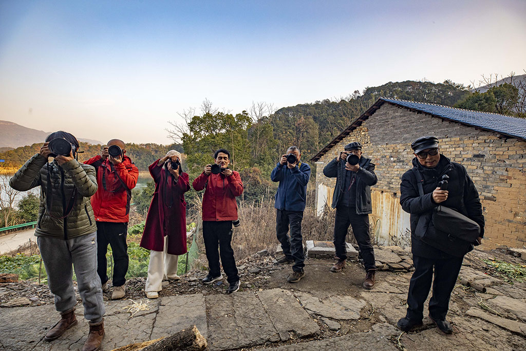 仙岛湖合影 中午抵达仙岛湖并入住丽景酒店。下午,在孙主席带领下,大家沿湖踩点,并沿途记录人文风貌——劳作的渔民、闲坐的老人、蜿蜒的村道,皆成为镜头中充满故事感的画面。