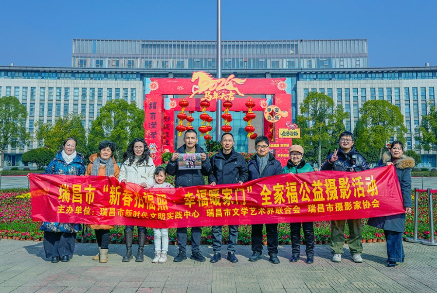 志愿服务女子别动队 九江摄影网讯 2月8日,瑞昌市“新春拍福照,幸福暖家门”全家福公益摄影活动在市府广场国旗台下温暖启动,正式拉开马年春节系列公益摄影服务的帷幕。本次活动由瑞昌市新时代文明实践中心、瑞昌市文学艺术界联合会、瑞昌市摄影家协会、瑞昌市职工文化体育协会摄影分会倾情发起,旨在以影像为载体,记录家庭温情,传递新春祝福,为市民送上一份别具心意的新年文化礼物。