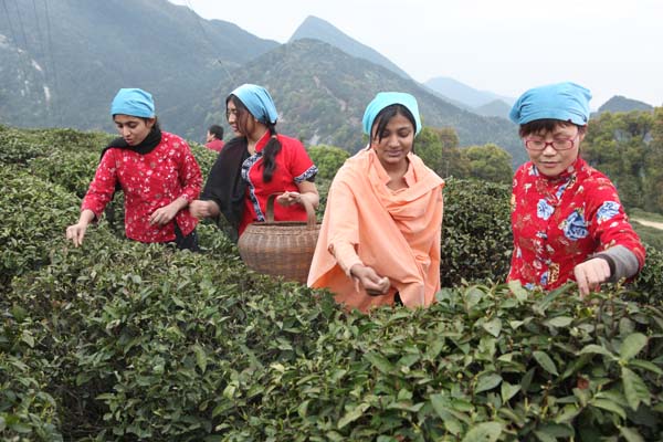 《外国友人学采茶》(三等奖) 桂剡高 摄