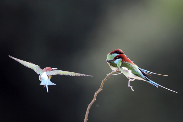 蓝喉蜂虎恋上鄱阳湖 入夏以来,位于我国第一大淡水湖江西鄱阳湖畔的九江市庐山区姑塘镇迎来了众多美丽的小鸟蓝喉蜂虎。蓝喉蜂虎属蜂虎科鸟类,羽色艳丽,以蓝喉为特征,极具观赏价值。 据悉,该物种已列入国家林业局2000年8月1日发布的《国家保护的有益的或者有重要经济、科学研究价值的陆生野生动物名录》。 人民日报记者 吴齐强 文 沈俊峰 摄(新华社发)