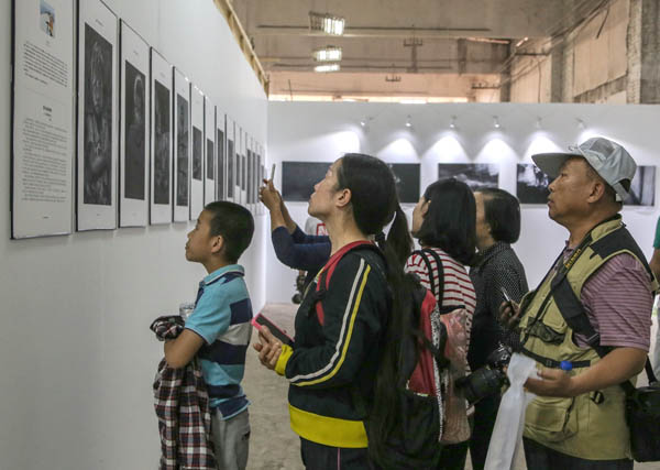 观众在观看张项理的摄影专题“仙本那——那双忧郁的眼睛”展览