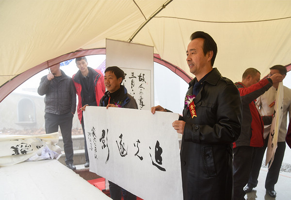 庐山管理局局长彭敏宣布开幕 启动仪式结束后,出席的领导和嘉宾一同兴致勃勃观看了庐山摄影作品展及书画展,并观摩书画家现场创作,欣赏了茶艺表演。省摄协主席徐渊明还应邀挥毫书写了“大美庐山”,并为九江摄协题写了《追光逐影》的书名。