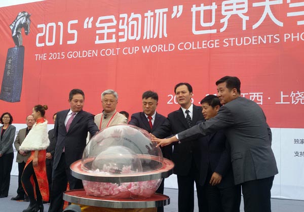 2015“金驹杯”世界大学生摄影展开幕式在上饶市市民公园举行。