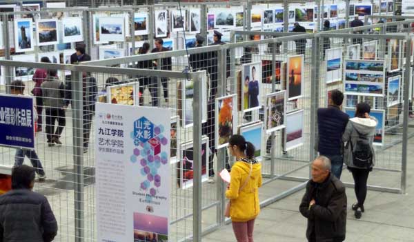 九江市摄协、九江学院艺术学院组织的作品展在上饶中心广场举行。