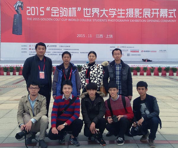 11月21日晚,2015“金驹杯”世界大学生摄影展发布典礼暨晚会在上饶市体育中心举行。晚会上,发布了“感知上饶”、“十佳平面模特”、“最佳组织院校”、“金驹伯乐”、“金驹杯”等一批入选作品;上演了一台具有浓郁上饶特色的文艺演出。九江学院艺术学院副教授熊晓洁指导的学生陈伟钊作品《失乐园》获非专业组纪实类优秀奖,《江岭花海》获感动上饶单元优秀奖。何秀哲同学的《铁匠的坚守》获入选。