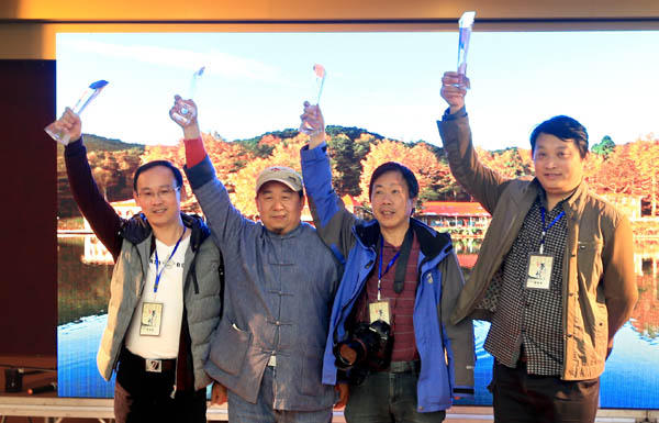 各级领导为获奖者颁奖。九江市摄协主席宋小勇获得2015年度江西“十佳”摄影组织工作者称号,这是他连续四年、也是江西摄影唯一一个连续四年获得这一称号的基层摄协主席。九江市摄协副秘书长张项理、彭泽县摄协主席疏隶书获得2015年度江西“十佳”摄影人物称号,九江市摄协理事、九江市公安摄协主席熊敏宇获得2015年度江西“十佳”摄影志愿者称号。