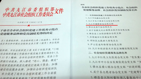 九江市摄协党支部受到表彰