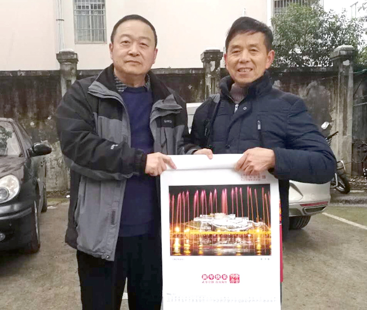 1月5日,摄影家来到浔阳区甘棠街道新公园社区送文化挂历时情景