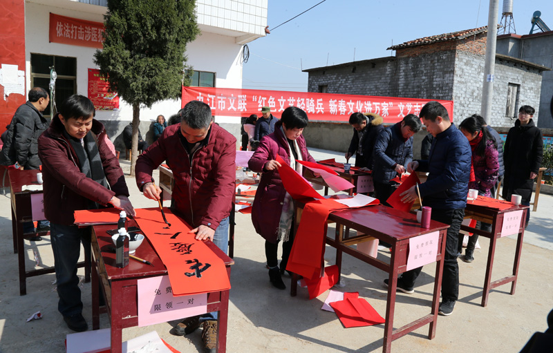 为配合市文联开展好这次活动,九江市摄影家协会在副主席兼秘书长陈杰的带领下,派出市直和都昌摄协的多名摄影师,带上彩色打印设备,一大早就赶到花桥村,为精准扶贫对象户拍摄全家福,并现场打印出彩色图片送到他们的手中。九江市书法家协会在省书法家协会副主席、九江市书法家协会副主席曹端阳,九江市书法家协会副主席桂相文的带领下,为村里书写春联。春节临近,打工人员陆续回家过年与家人团聚,一张美美的全家福,一副红红的春联,让他们倍感温馨!