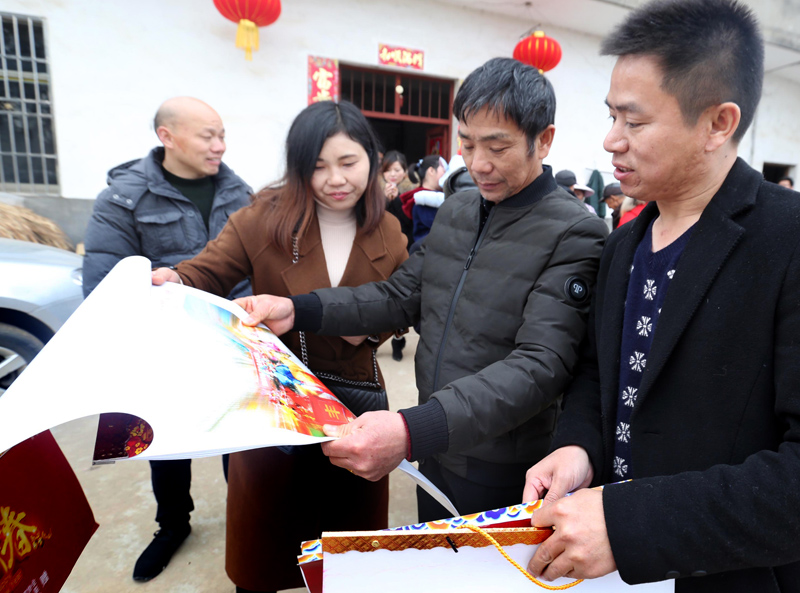 乡亲们拿着挂历喜笑颜开