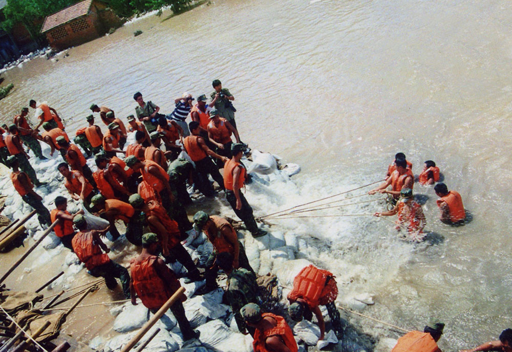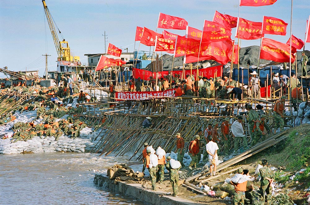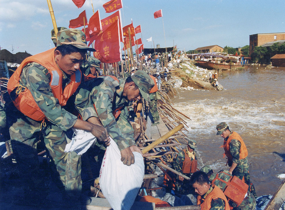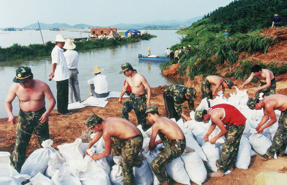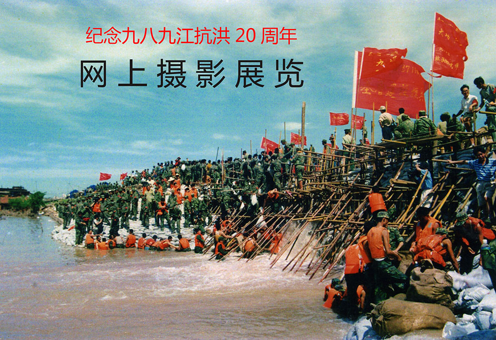 这是一个让人揪心而又激情迸发的夏天; 这是一首军民协同波澜壮阔的抗洪史诗; 这是一次人类与大自然之间的殊死较量。 1998年夏秋之交,我国一些地区遭受了极其严重的洪涝灾害,特别是长江、鄱阳湖水位,其来势之猛、水位之高、范围之广、时间之长,均为历史所罕见,为建国以来所未有。九江在8月份,先后出现了长江江洲大堤和长江城防大堤决口。在人民群众生命安全面临严重威胁的危急关头,英勇的人民子弟兵,发扬“一不怕苦,二不怕死”的革命精神,“严防死守,人在堤在,誓与大堤共存亡”的大无畏英雄气概,与广大干部群众一道,展开了一场气吞山河的抗洪抢险斗争,奏响了一曲曲可歌可泣的生命壮歌。特别是九江堵口成功,创造了我国抗洪史上惊天动地的人间奇迹! 1998年9月15日,是驻守九江抗洪抢险部队胜利凯旋的日子,为纪念九八抗洪胜利20周年暨伟大“抗洪精神”在九江诞生20周年,由九江日报社、九江市文联主办,九江市摄影家协会、九江日报新媒体中心、九江日报图片中心承办的《纪念九八九江抗洪20周年网上摄影展览》,展出经过精心选择的图片98幅,再次展现当年军民抗洪抢险的历史镜头。 当前,全国上下正高举习近平新时代中国特色社会主义思想的伟大旗帜,朝着实现“两个一百年”奋斗目标前进。长江拥有独特的生态系统,是我国重要的生态宝库。习近平指出,当前和今后相当长一个时期,要把修复长江生态环境摆在压倒性位置,共抓大保护,不搞大开发。通过《纪念九八九江抗洪20周年网上摄影展览》,必将给人们以思考、教育、鼓舞和启迪。