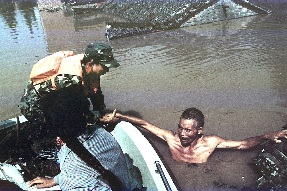 《九江日报》记者傅夏民在江洲一边救援一边采访。 策展人:宋小勇 摄 影:贺延光 于文国 孙仁贵 燕 平 宋小勇 田小元 潘 浔 欧阳萍 王新贵 邓腊子 林国光 周启威 饶金星 孔翔云 孙晓方 |
