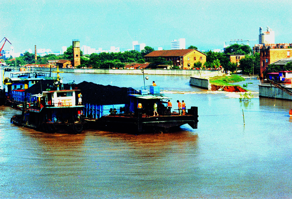 指挥将“甲21025号”大煤船牵引到决口处沉船堵口。
