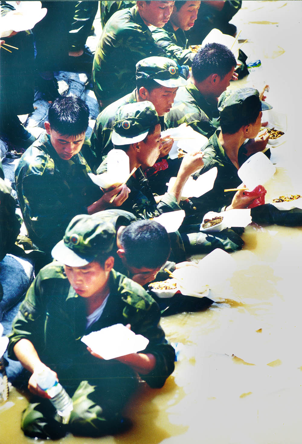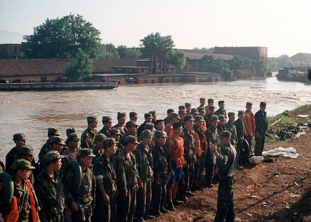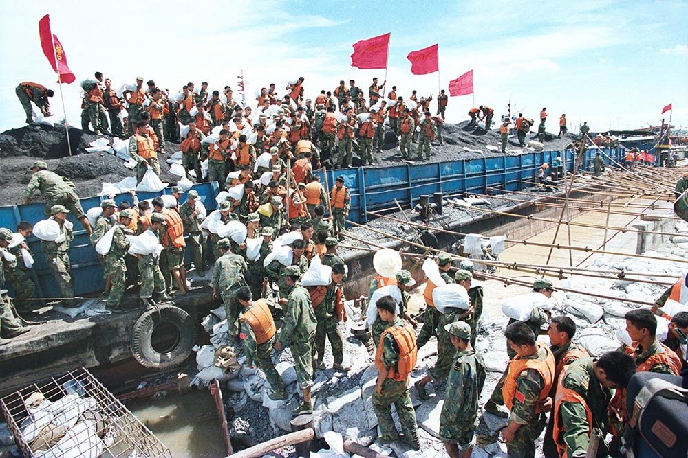 1998年8月9日早晨,北京军区某部封堵决口技术部队222名官兵来到决口。