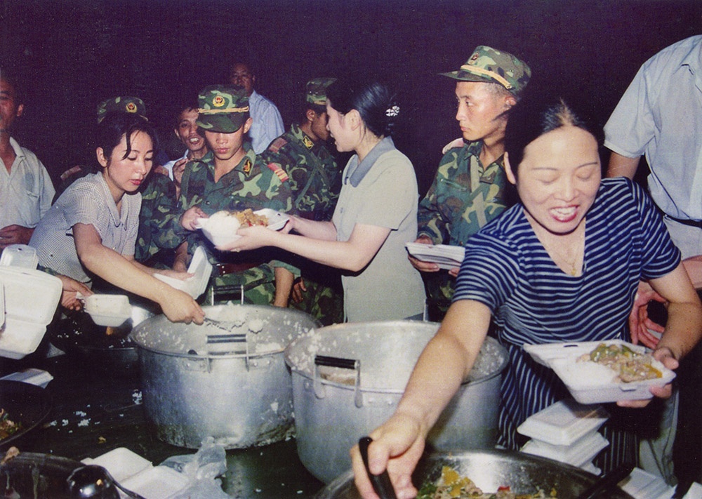 九江宾馆员工把美味可口的饭菜送到抗洪战场。