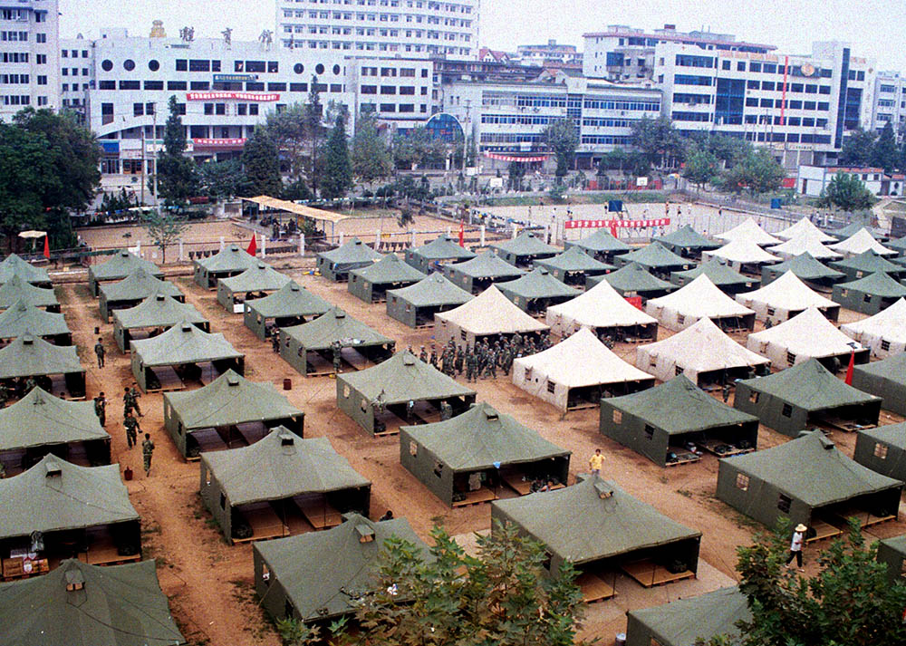 为了让学校按时开学,部队搬出学校在外搭篷宿营。