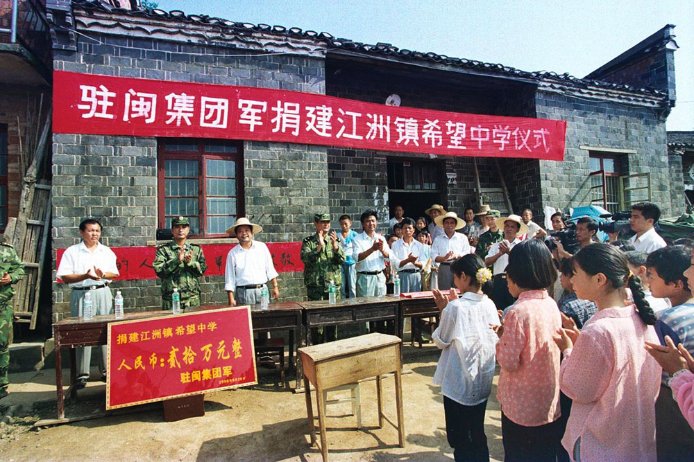 驻闽集团军捐建江洲镇希望中学仪式。