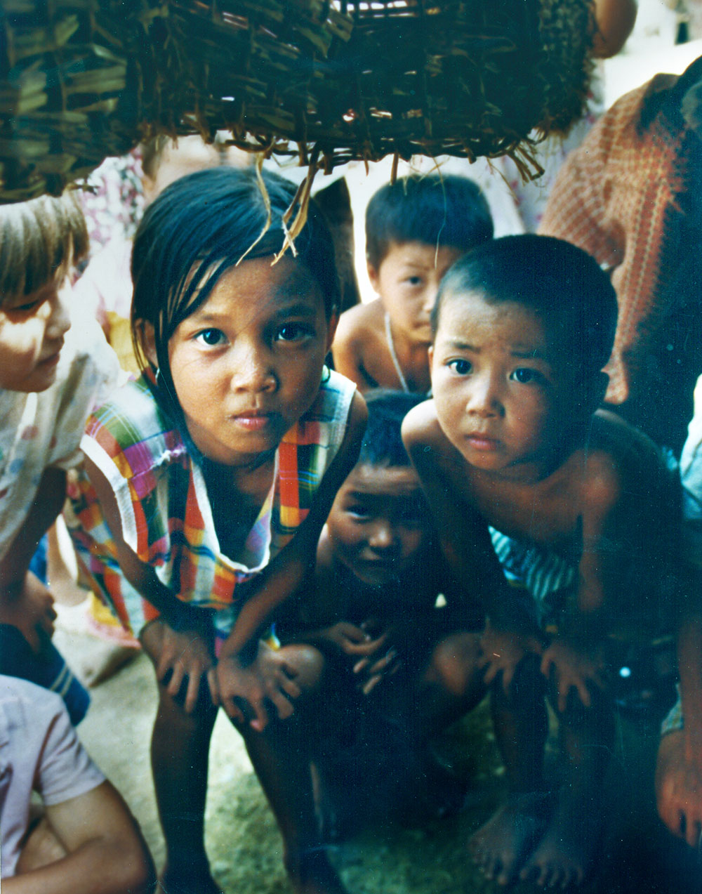 1998年8月4日,永修县立新镇“大眼睛”姑娘淦腊菊和小伙伴在帐篷里避暑。