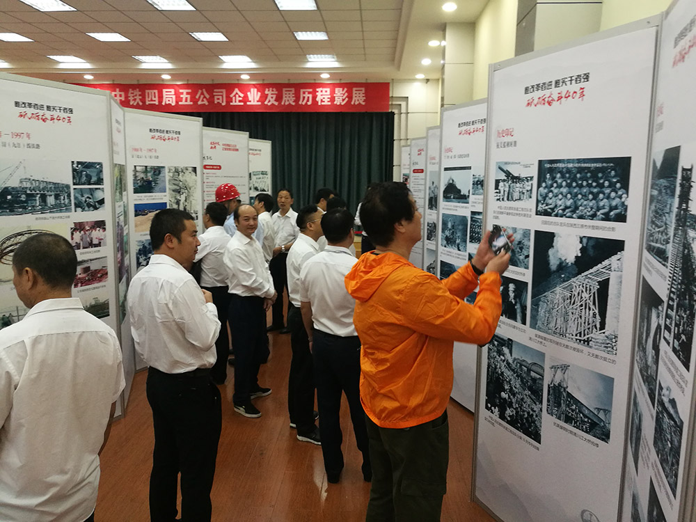 改革开放四十年中铁四局五公司企业发展历程回顾展,是从上万幅历史图片中遴选出300余幅经典画面,连接、还原出中铁四局五公司成长、改革、发展的影像历史。从“前言序语”到“历史印记”再到“改革开放的四个10年篇章”最后“完整大事记(档案版本)“,七个部分以时间为轴,以事件为序,图文并茂地展现了改革开放40年来,五公司几代干部职工,紧跟时代潮流,始终以兴企、富企、强企为己任,出台一系列方针政策,推出一系列重大举措,让企业在计划经济向市场经济的转轨中夺得先机,为企业在市场经济时代的竞争中,不断发展壮大奠定了扎实基础。