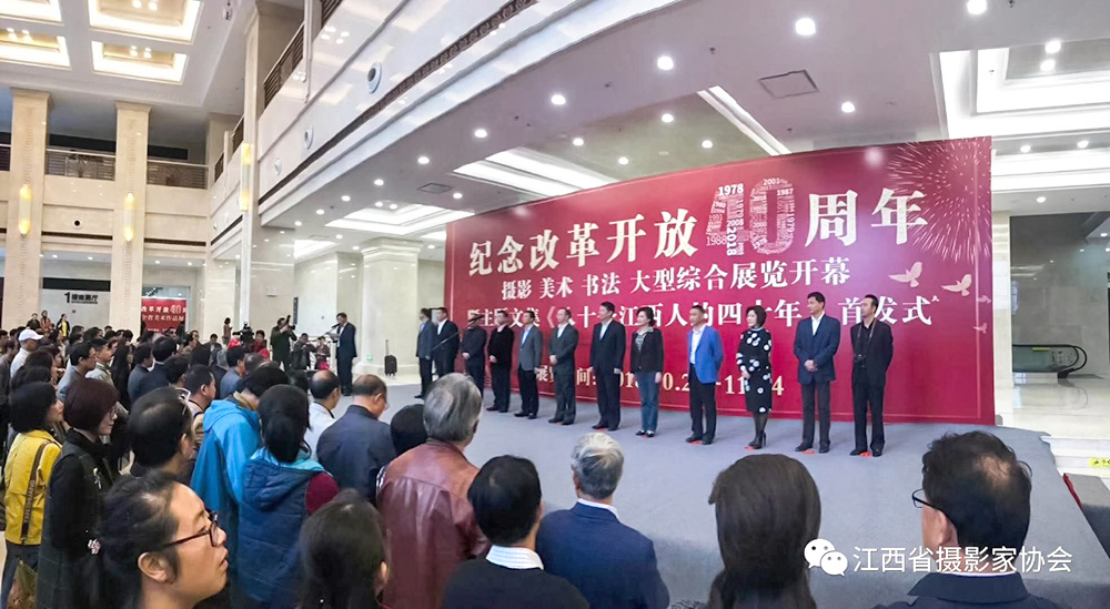 九江摄影网讯(一竹 木力)金秋十月,丹桂飘香。 2018年10月22日上午10点,地处南昌城市核心区位的江西省展览中心一楼大厅内,人头攒动,热闹非凡,由江西省文联、江西日报社主办,江西省摄影家协会承办的 “巨变”——江西省纪念改革开放40周年摄影图片展,在众多媒体和摄影人的关注中隆重开幕。