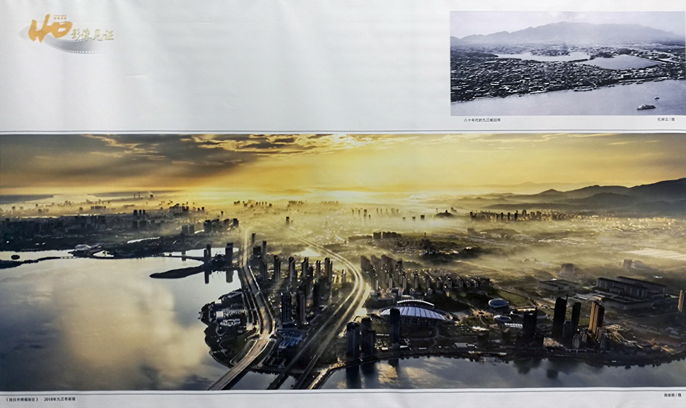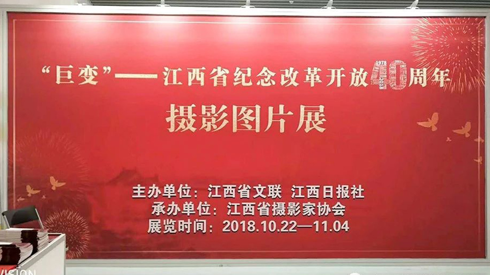 此次摄影展共展出反映江西改革开放四十周年辉煌成就的作品100组。 这些作品,大多是同一地点、同一角度拍摄的、具有鲜明对比的新旧照片。作品采用高档油画布,微喷打印,均制作成2米或1.2米长的大幅卷轴,新照片为彩色,旧照片为黑白,旨在突出四十年来的对比,展出形式别具一格,方便巡展,得到了领导和观众的充分肯定。