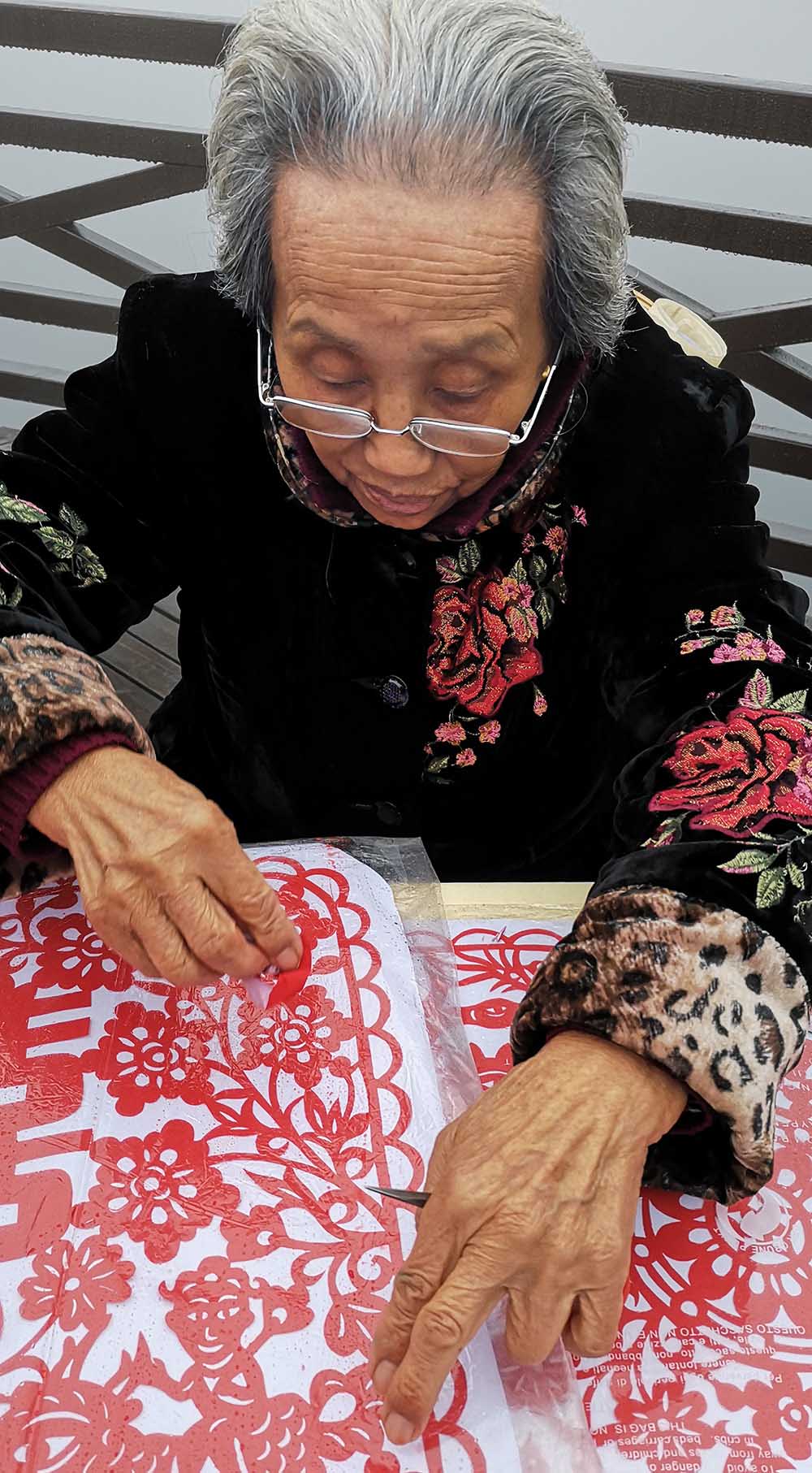 中国非物质文化遗产传承人刘诗英现场剪纸