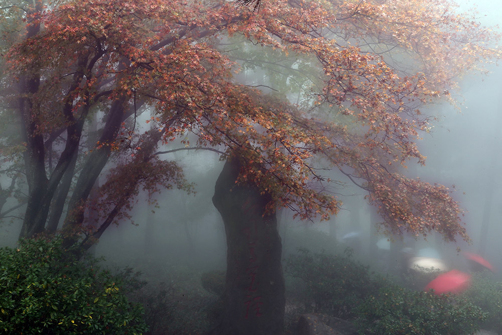 雾濛濛,像是走进了仙境一般的花径