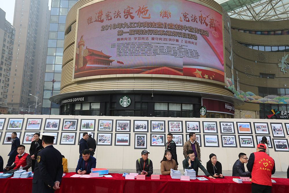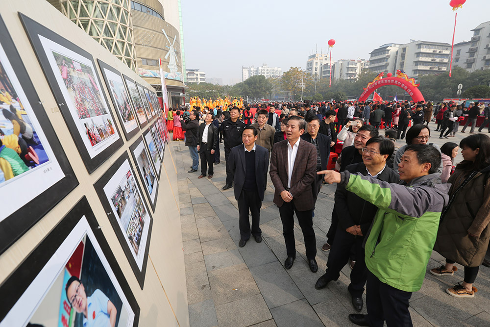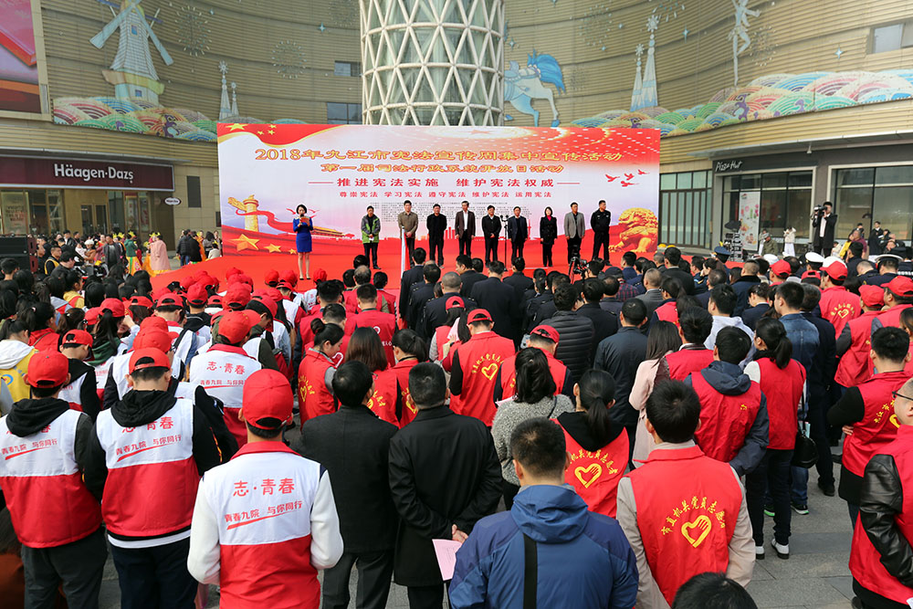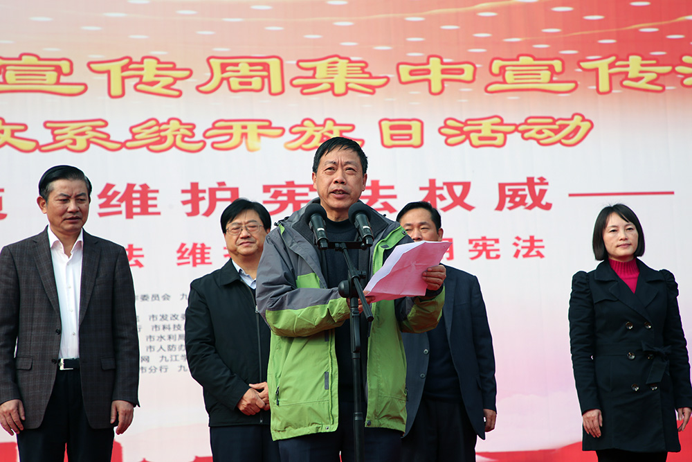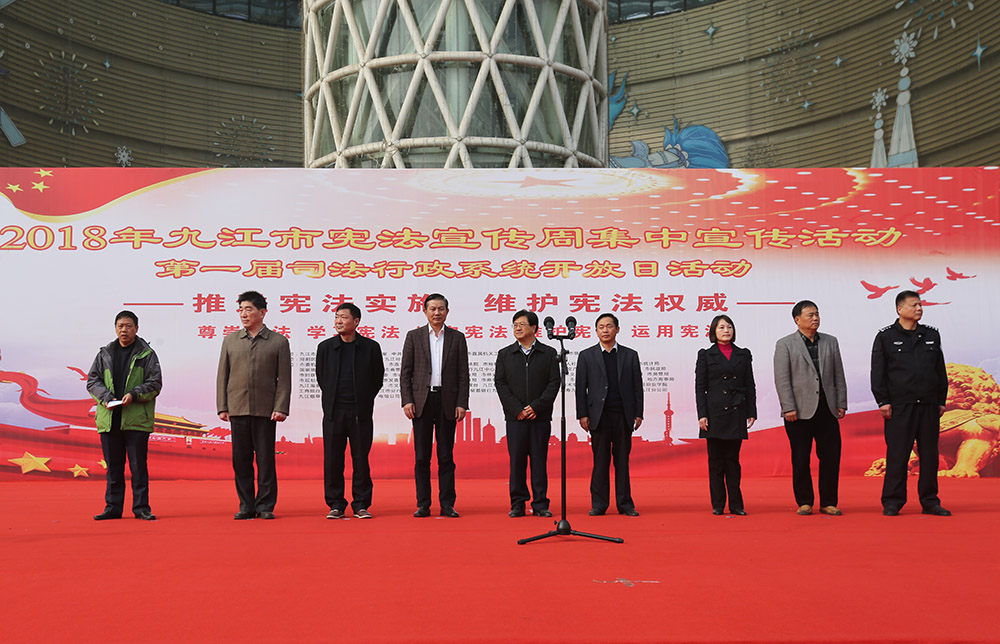 九江摄影网讯(木力)11月30日上午,由九江市法建办、九江市普法办、中共九江市委宣传部、中共九江市直机关工委主办的九江市“宪法宣传周”集中宣传活动、第一届司法行政系统开放日活动、“法润浔城”摄影大赛获奖作品展在九江开发区联盛快乐城广场举行。全市100余个市直单位和浔阳区、濂溪区、经济技术开发区的区直部门、驻市高校的学生代表及社会各届群众共计1000余人参加。九江市人大常委会副主任、党组副书记夏兴出席活动并讲话,九江市政府副市长张荣先、九江市政协副主席陈世勇、九江市司法局党组书记、局长宋琪,中共九江市直机关工委调研员、副书记肖乐,九江日报社副总编、九江市文联副主席、九江市摄影家协会主席宋小勇,浔阳区人大常委会副主任孔焙,濂溪区人大常委会副主任徐宏,九江经开区党工委委员、公安分局局长熊扬慎及市直有关单位、各区相关领导出席活动。