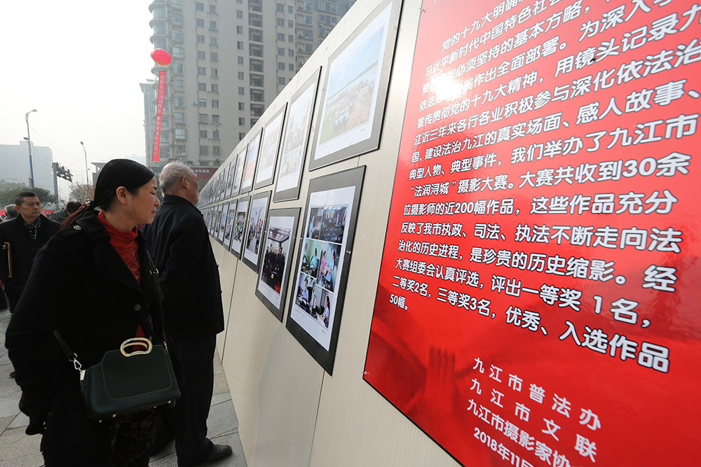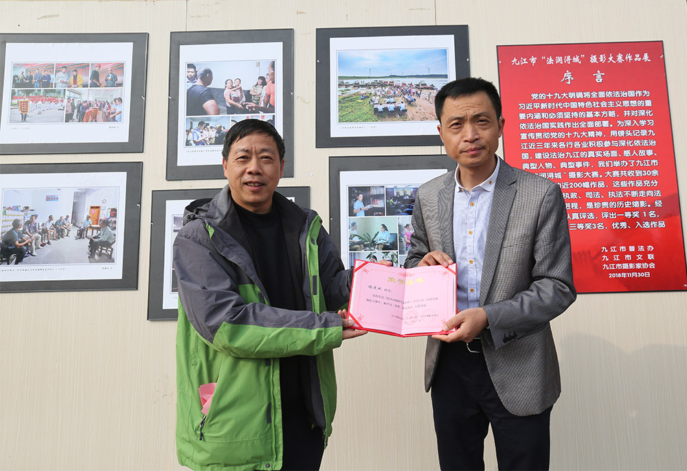 据了解,由九江市普法办、九江市文联主办,九江市摄影家协会承办的“法润浔城”摄影大赛历时6个月,共收到了来自我市各地30多名摄影家及摄影爱好者选送的120幅参赛作品,这些作品集中反映了我市执政、司法、执法不断走向法治化的历史进程,是珍贵的历史缩影,。经大赛组委会认真评选,评出一等奖1名,二等奖2名,三等奖3名,优秀奖10名,入选奖40名。