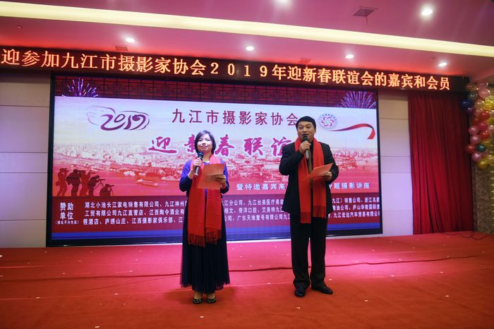 九江摄影网讯(沈双武)1月19日下午,九江市摄影家协会2019年迎新春联谊会在九江市山水国际大酒店隆重举行。九江市摄协顾问、九江市政协原巡视员张华东,九江市摄协特邀理事、江西省税务局副巡视员夏文川,南昌金像文化传媒有限公司总经理黄小欢,中国财政摄影家协会副秘书长、《数码摄影》杂志编委、南京培训机构《亮室摄影学社》创始人高东阳,九江市摄协顾问、江西日报九江分社高级记者燕平,九江市政协教文卫体委主任潘浔,九江市文联党组书记陆建珠,九江市摄协特邀理事、九江广播电视台台长周云飞,九江市民政局副局长陆发,九江市林业局副局长陈石记,九江市摄协特邀理事、九江市政协办公厅原调研员郭建林,九江市摄协常务理事、九江太保财险公司原总经理肖明,九江市摄协特邀理事、濂溪区人大常委会原主任陈飞林,九江市摄协特邀理事、庐山区政协原副主席宋斌,九江工业建筑设计院原院长梁豪,九江市交警三大队大队长周兴芜,九江市摄协名誉主席、九江日报原副总编洪世坤,九江市文联副主席、原星子县摄协主席饶金星,九江市摄协顾问、九江市职工摄协主席田小元,江西昊然飞扬摄影俱乐部总经理迟荣国、铭涵摄影俱乐部总经理万国亮及赞助单位负责人应邀出席。在九江的市摄协班子成员,主席宋小勇、副主席蔡杰、杨青、邹树汉、陈杰、罗匡龙,副秘书长沈双武、蔡少敏、李涛渊、张项理和来自全市各基层摄协的近400余名摄影家、摄影爱好者会聚一堂,大家一起分享摄影给他们带来的快乐。