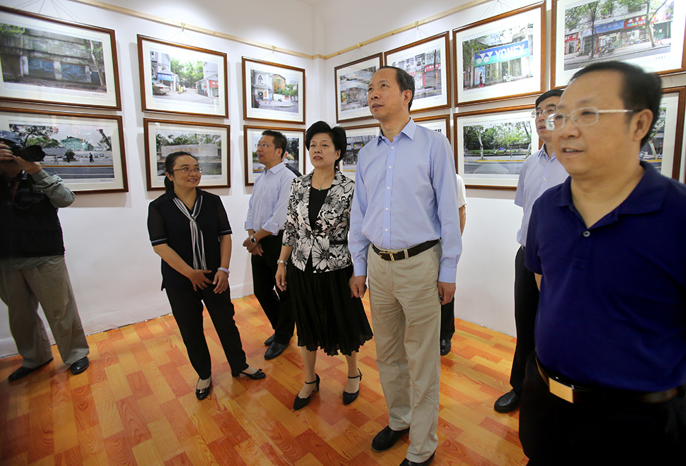 九江摄影网讯(封丽君)9月28日,在九江市申报国家历史文化名城主阵地——浔阳区庾亮南路历史文化街区落成开街仪式之际,浔阳区摄影家协会为配合文化街区落成,举办了庾亮南路历史文化街区摄影展。九江市委副书记、市长谢一平,九江市人大常委会主任冯静兴致勃勃地参观了展览。